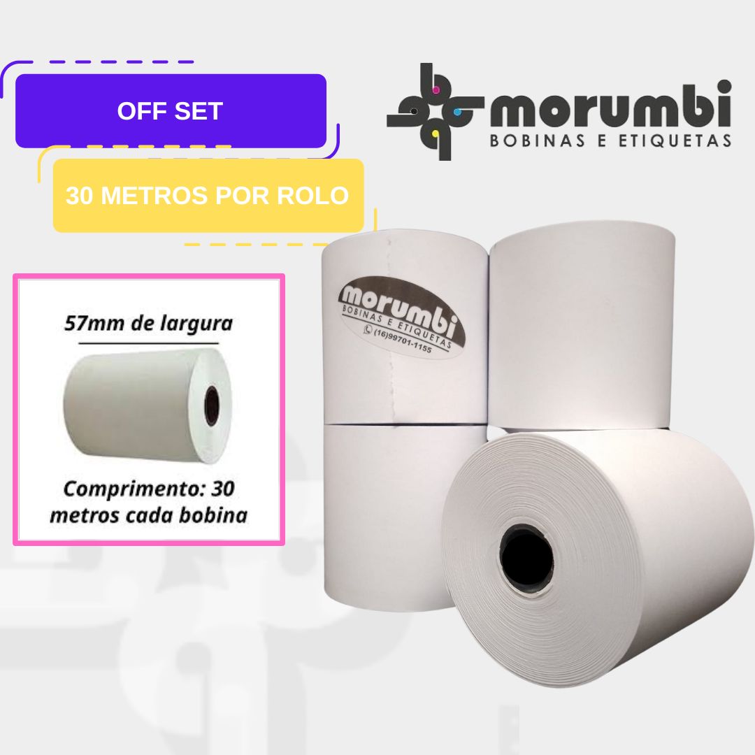 Bobinas em papel OFFSET 56 grs tamanho 57x30mm, 60x30mm, 69x30mm e 76x30mm.